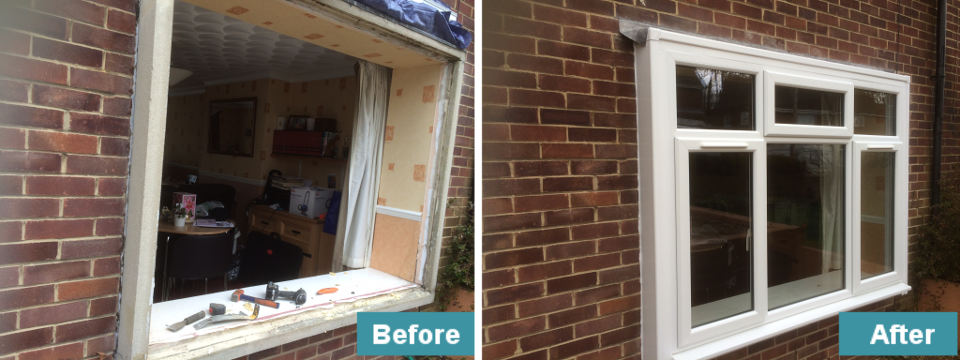 We recently carried out the removal of old rotten wooden windows and replaced them with PVC u windows that had the Rosewood exterior finish and white interior finish.